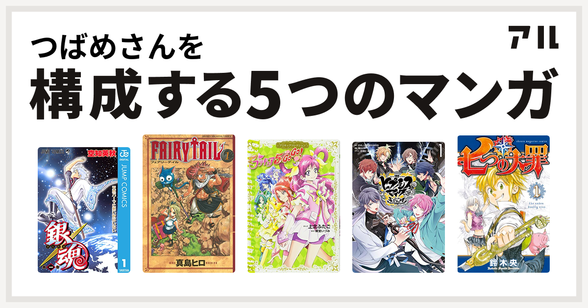つばめさんを構成するマンガは銀魂 Fairy Tail Yes プリキュア5gogo ヒプノシスマイク Division Rap Battle Side F P M 七つの大罪 私を構成する5つのマンガ アル